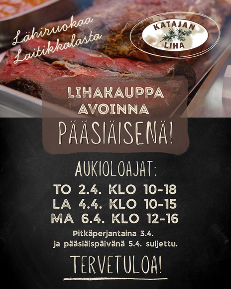 Lihakauppa avoinna nyt pääsiäisenä vielä lauantaina ja maanantaina. Tulkaahan siis ostoksille!🤩